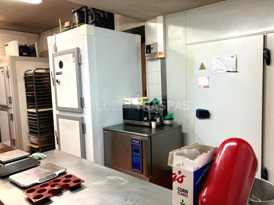Ref. T-3069-05 Se traspasa Local con licencia de Cafetería, pastelería, obrador con degustación de 160 m2 distribuidos en 2 plantas con fachada acristalada de 3,5m, salón para 22 comensales. Contra Barra con 3 taburetes, Zona Office de 55m acondicionada con salida de humos cámara fría, fermentadora, 6 congeladores, 3 amasadoras, abatidor, horno 2 cuerpos con estufa, horno tipo rational, cortafiambre, laminadora, plancha, embazadora vacía, 2 amasadoras pequeñas y 1 placa de inducción. El local ignifugado tiene aire acondicionado, 2 aseos y almacén.