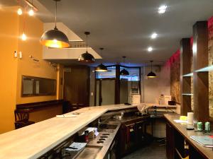 Ref. T-3080-03 Se traspasa bar Restaurante con licencia C3 de 185 m², distribuidos en 1 planta + altillo, fachada acristalada de 2 metros, una entrada y 50 comensales. Barra de 7 metros con 5 taburetes, cafetera, 1 botelleria 3 puertas, 1 nevera 3 puertas,nevera de vinos, contrabarra de 2,80 metros y 2 cortafiambre. Cocina de 18 metros acondicionada con salida de humos, semivista, 2 neveras de 2 puertas, microondas, plancha a gas, freidora 1 de 2 cuerpos a gas, 5 fogones a fuego, gas, lavavajillas, 1 freidora a gas, horno a gas, y cámara. El Local está actualmente insonorizado e ignifugado, y cuenta con almacén, salón de 9 mesas, 20 sillas + 2 bancos, equipo de música y aire acondicionado.