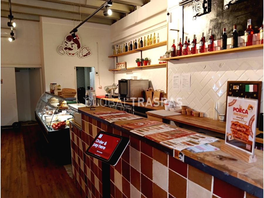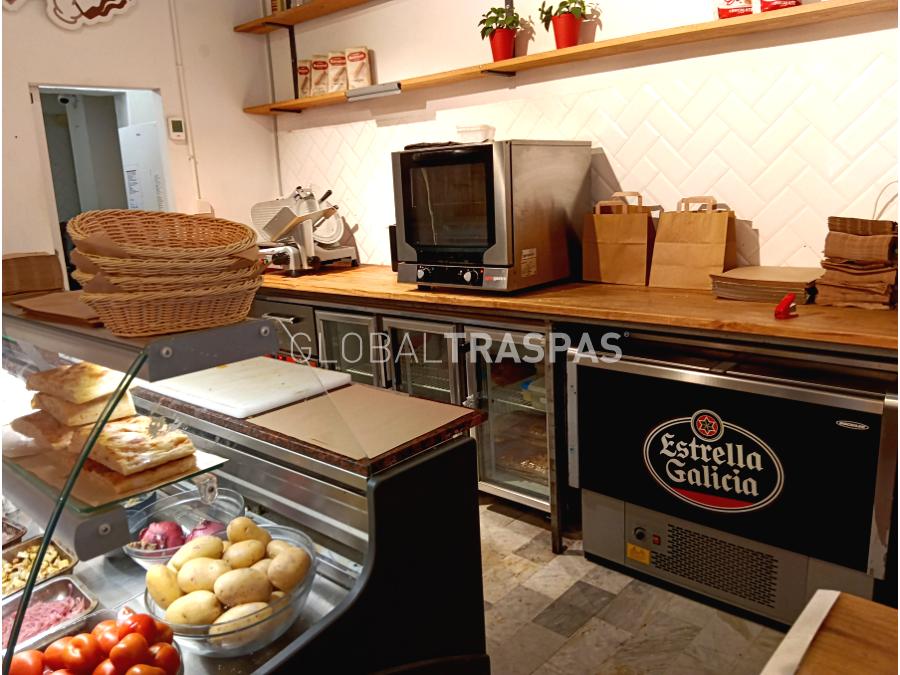 Ref. T-3107-10 Se traspasa local con licencia de A6.1 platos preparados sin obrador de 50m² distribuidos en 1 planta con fachada acristalada de 3.5 metros y una entrada. El local está equipado con máquina registradora, botellería 3 puertas, nevera, vitrina expositora, office, nevera vertical, microondas, horno a gas, 1 aseo, almacén y aire acondicionado.