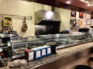 La cocina de 12 m² se encuentra completamente acondicionada con salida de humos, 6 neveras, 1 horno de gas, 1 freidora, 1 plancha y 4 fogones a fuegos.