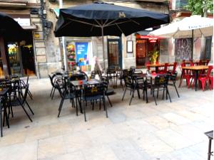 TERRAZA DE 4 MESAS, 16 SILLAS Y 1 PARASOL.