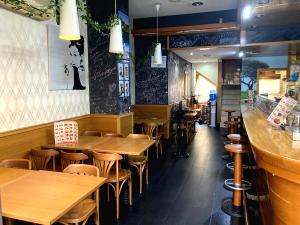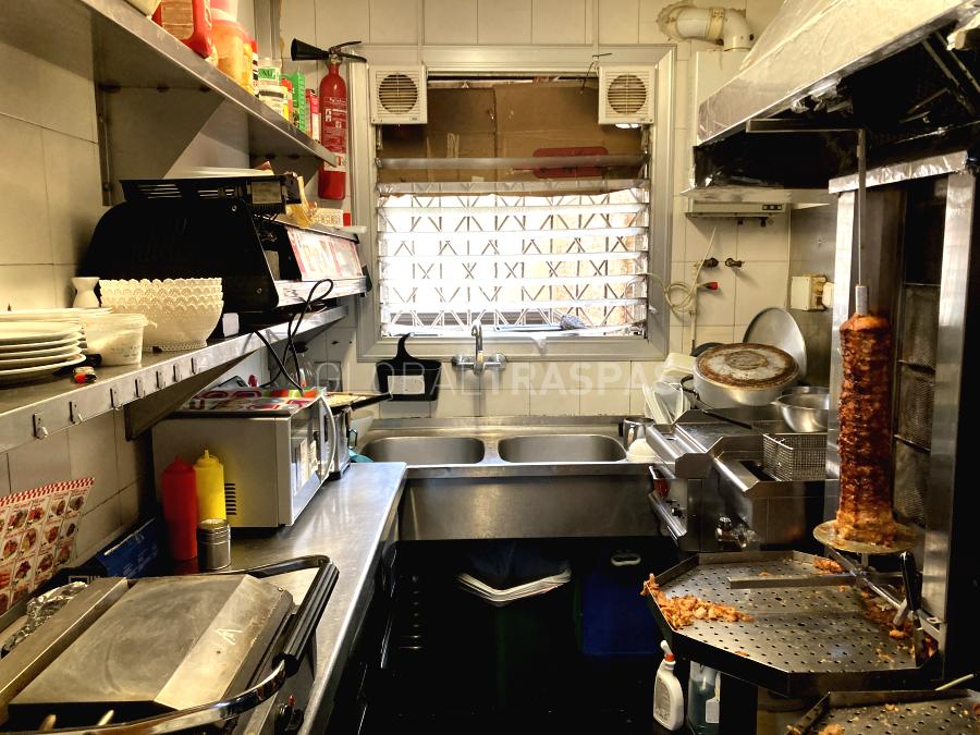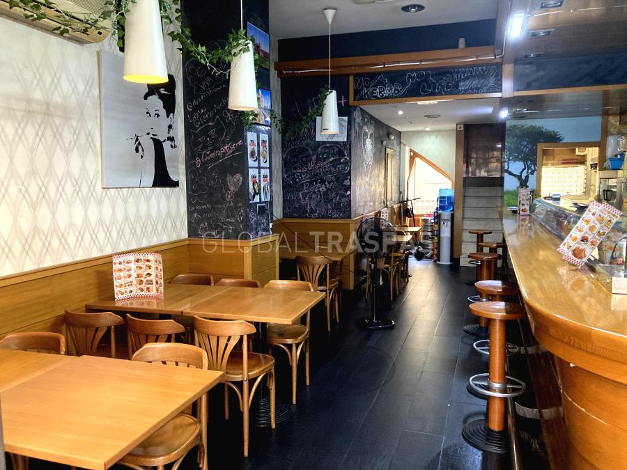 Ref. T-3028-05 Se traspasa Bar Restaurante con licencia C3 de 80m² distribuidos en 2 plantas con fachada acristalada de 3m y con aforo de 21 comensales. La barra de 7.5 metros con 6 taburetes cuenta con cafetera (propiedad), tirador de cerveza, máquina registradora, botelleria, nevera y vitrina expositora. La cocina de 6 m² esta acondicionada con salida de humos, 2 neveras, 1 congelador, horno, 1 microondas, 1 plancha a gas, 2 freidoras eléctricas, 2 máquinas de kebab y sistema de seguridad.