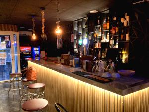 Ref: T-3021-10 Se traspasa Bar con licencia C1 de 120m² distribuidos en 2 plantas + altillo, con aforo de 25 comensales, fachada acristalada de 10m y una entrada. Cuenta con 2 barras; una en planta sótano que tiene 3m² con 2 taburetes y la otra que queda en planta calle que mide aproximadamente 6m² en forma de L con 6 taburetes, se encuentran equipadas con 2 máquina registradoras TPV, Botelleria 2+ 2 abajo, 1 nevera 3 puertas expositora abajo y tirador de cerveza (1 de 2 grifos). El local dispone de TV, Equipo de música con limitador precintado, equipo de luces, 3 tragaperras, almacén de 6m + altillo, 2 aseos y aire acondicionado.