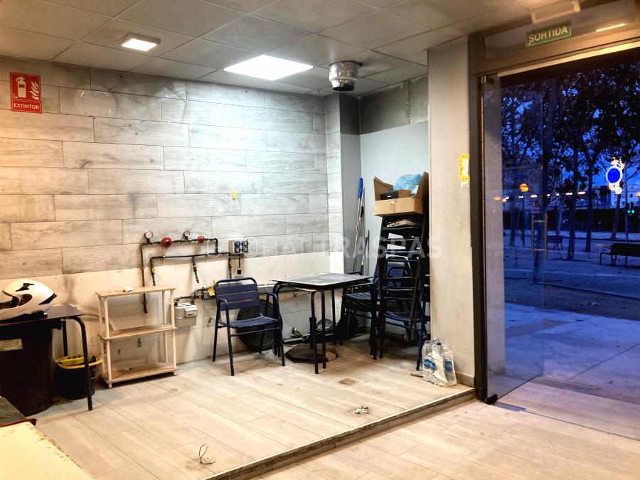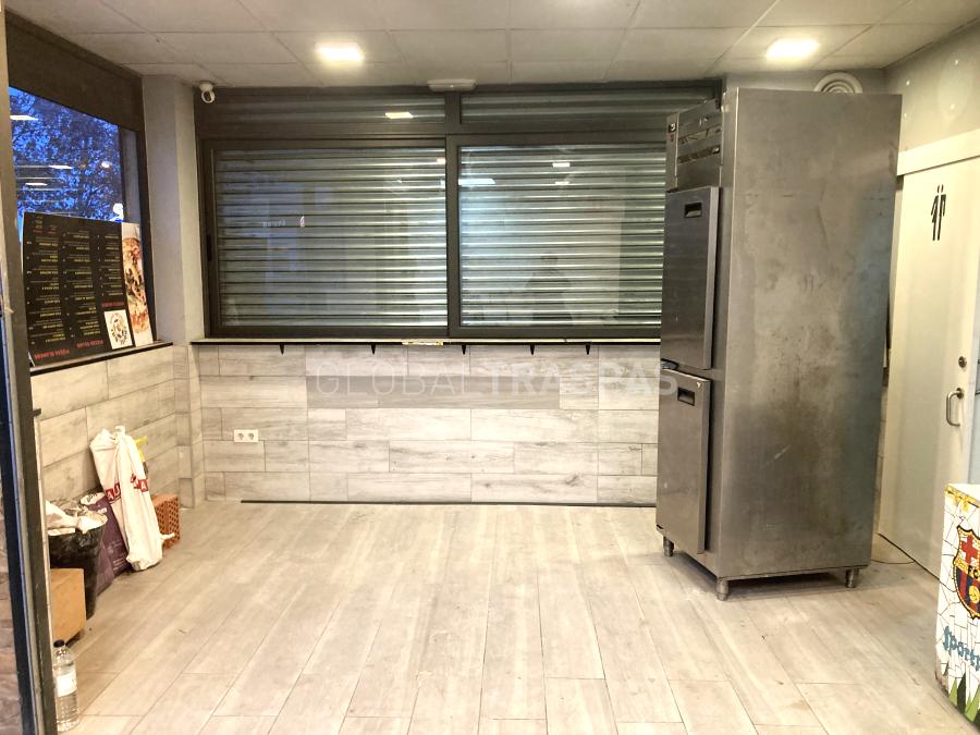 Bar Restaurante C3 esquinero de 60 m2, con aforo para 17 comensales, situado al lado del Parque del Turó Caritg, con fachada acristalada de 8 metros.