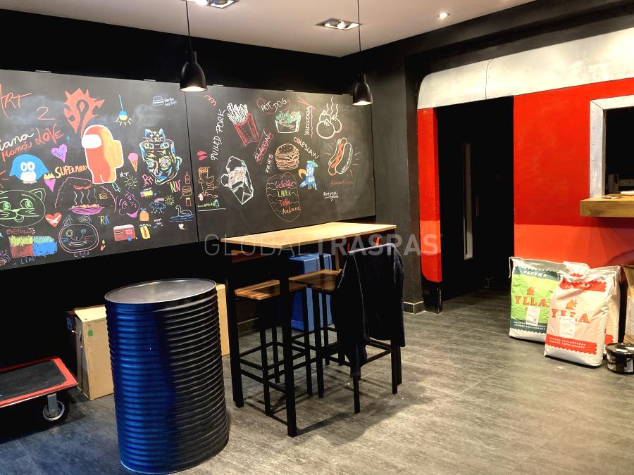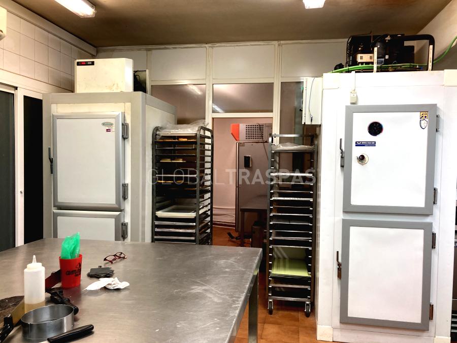 Ref. T-3069-05 Se traspasa Local con licencia de Cafetería, pastelería, obrador con degustación de 160 m2 distribuidos en 2 plantas con fachada acristalada de 3,5m, salón para 22 comensales. Contra Barra con 3 taburetes, Zona Office de 55m acondicionada con salida de humos cámara fría, fermentadora, 6 congeladores, 3 amasadoras, abatidor, horno 2 cuerpos con estufa, horno tipo rational, cortafiambre, laminadora, plancha, embazadora vacía, 2 amasadoras pequeñas y 1 placa de inducción. El local ignifugado tiene aire acondicionado, 2 aseos y almacén.