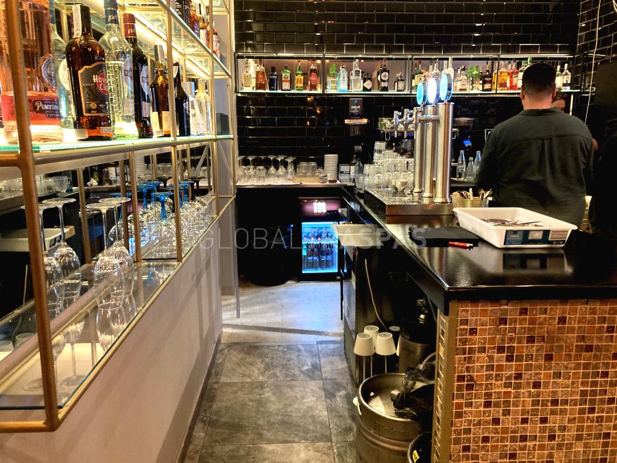 Dispone de una barra de 4,5 metros equipada con cafetera, tirador de cerveza, máquina registradora tpv, 2 botellerías y lavavasos.