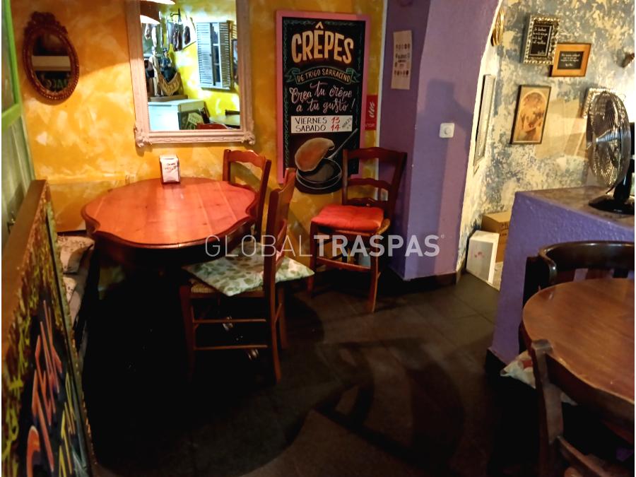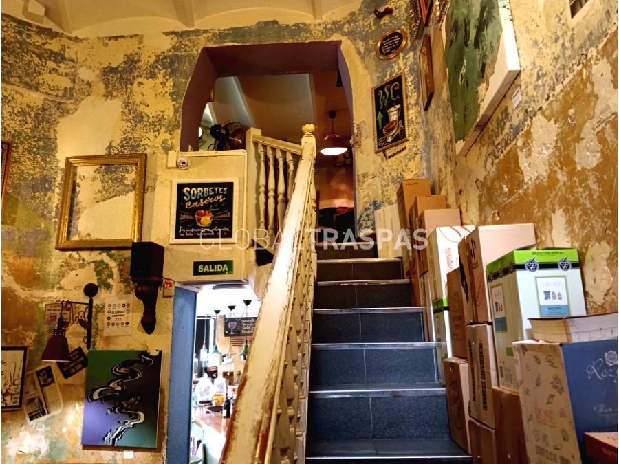 T-3113-02 Se traspasa Bar con licencia C1 de 55m² Distribuidos en 2 plantas, con aforo para 22 comensales, teniendo fachada acristalada de 2m. La barra de 4m con 4 taburetes, se encuentra equipada con máquina registradora TPV, cafetera, 3 neveras, lavavasos, 2 congeladores, salamandra microondas y cortafiambres. El local cuenta con 2 aseos, 1 almacén, aire acondicionado y 1 entrada.