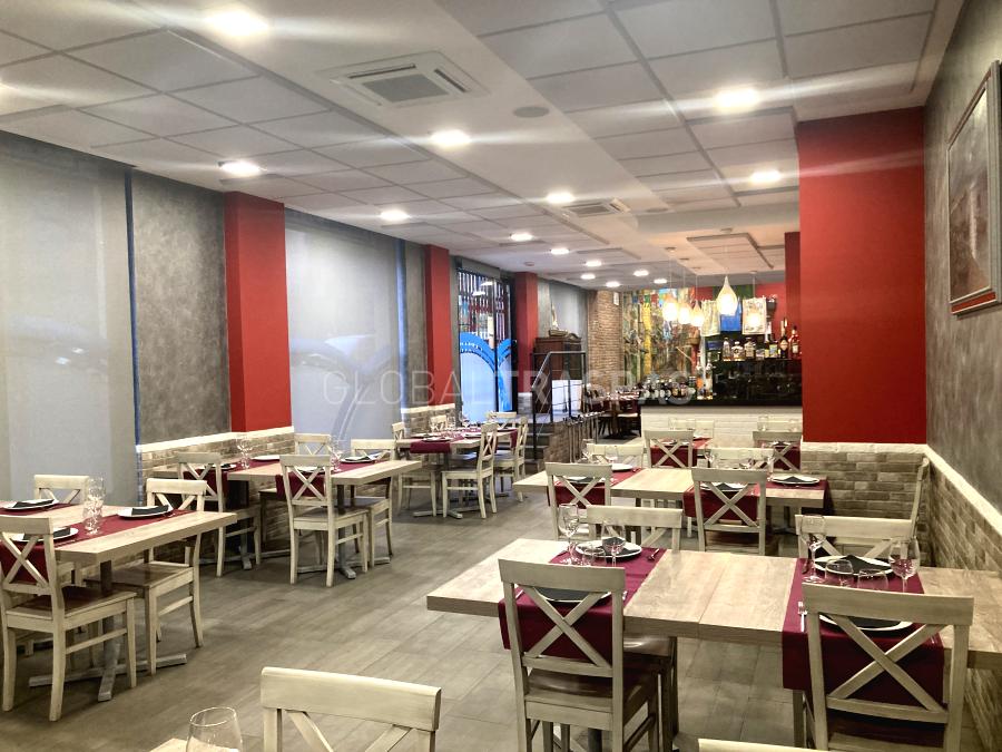 Bar restaurante C3 esquinero, de 250m² distribuidos en 1 planta y altillo, con dos entradas, fachada acristalada de 18 metros en total y un acceso para mercancías.