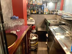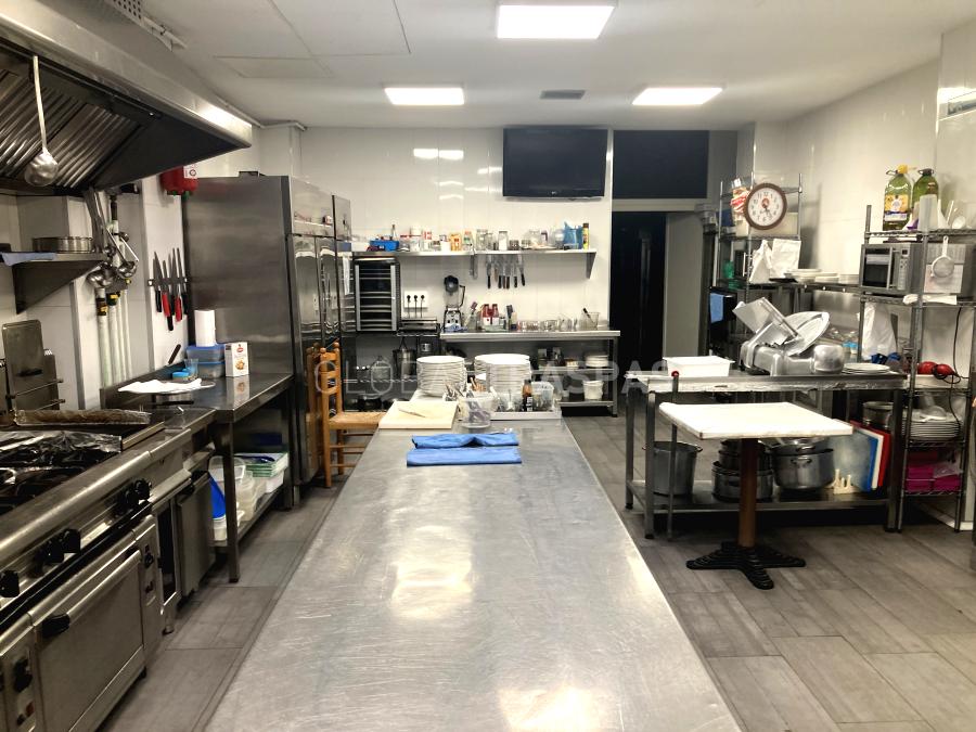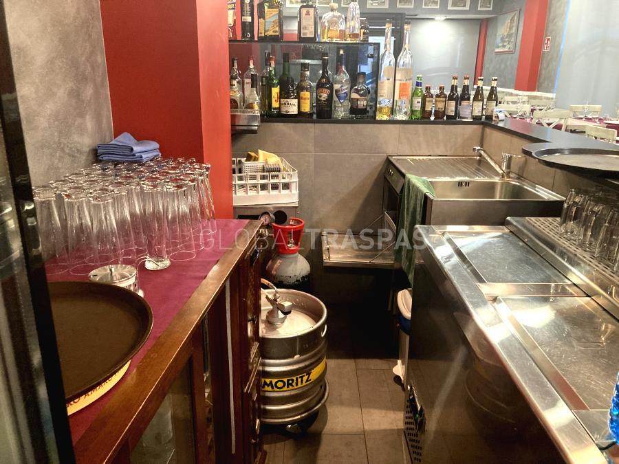 El local cuenta con barra de 6 metros, equipada con cafetera de proveedor, máquina registradora TPV, botellero, nevera, congelador y lavavasos.