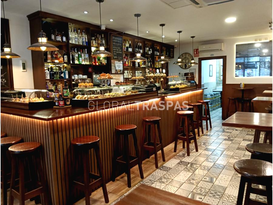 Se traspasa Bar con licencia C2 de 60 m2 distribuidos en 1 planta, con fachada acristalada de 3 metros, 38 comensales y 1 entrada.