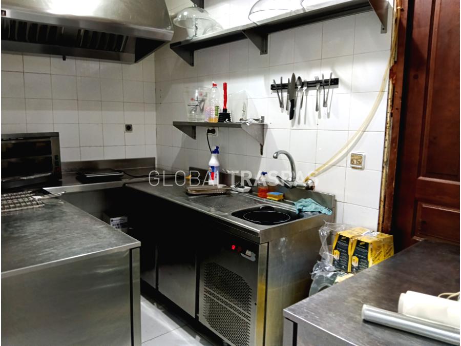 El local esta ignifugado, cuenta con 7 mesas en el salón, 22 sillas, 2 aseos (uno adaptado), almacén y aire acondicionado.